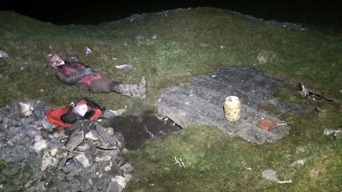 Again I called off Nettle due to silly high rainfall so me n Jeff headed up to Old Moor again with the plan to head down the small shaft with the metal sheet lid. We surprisingly found it straight away in the dark and the two of us lifted off the heavy lid. However all was not well as the shaft was now blocked 4m down by a large, dead sheep! Bits of blood and wool at the top showed that it was in quite a state before it was chucked down. This was no accident. Either way, there was no way we’d get past it nor haul it up just the two of us, so the job was shafted and we left the Shafted Sheep Shaft to drop the other shaft found last week.