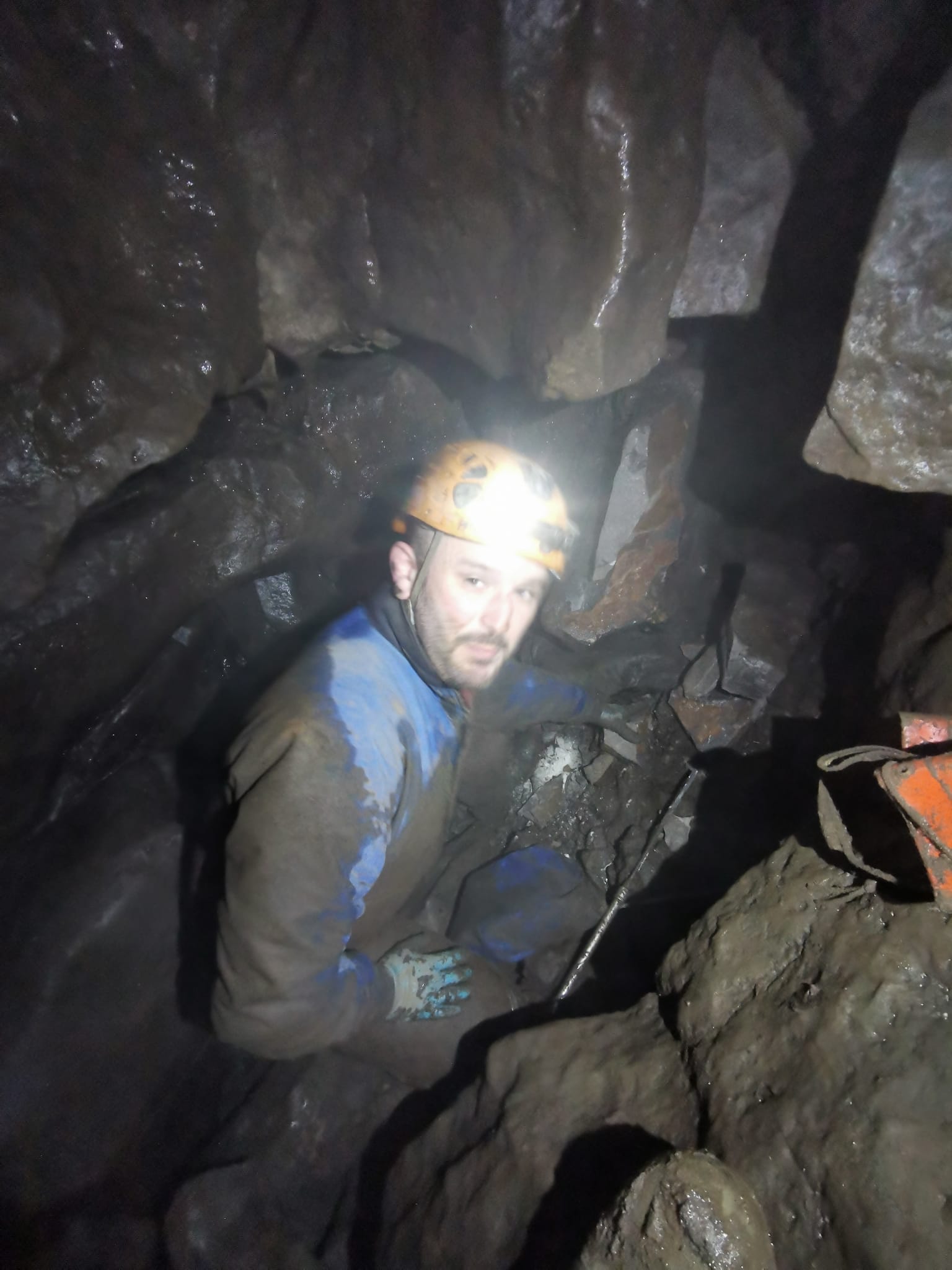 There was a large flake on the left had wall that if removed would give access into the more open rift but it would have been more advisable to remove some more of the left had wall to get it out. It got the better of me and Rob’s glory grabbing traits were rubbing off. So I capped it and yes as suspected it flew forward and blocked the way on. At this point I thought it was a good idea to swap with Rob and advised that some of the left had side needed taking out to get the huge flake out. Cheers Rob.