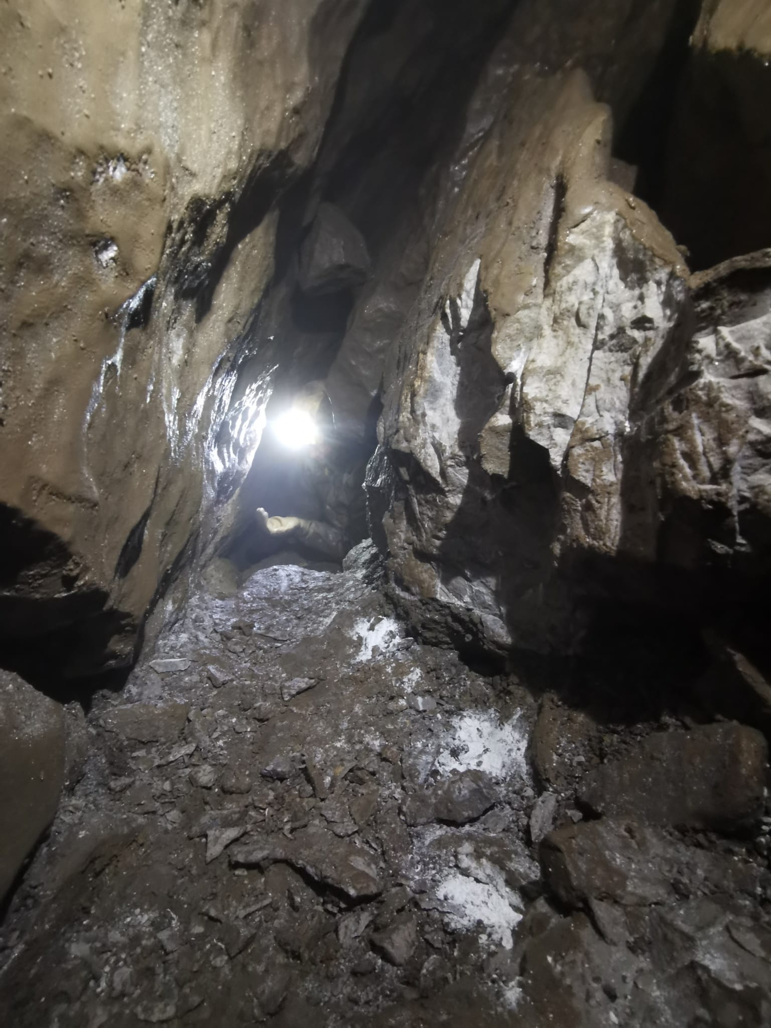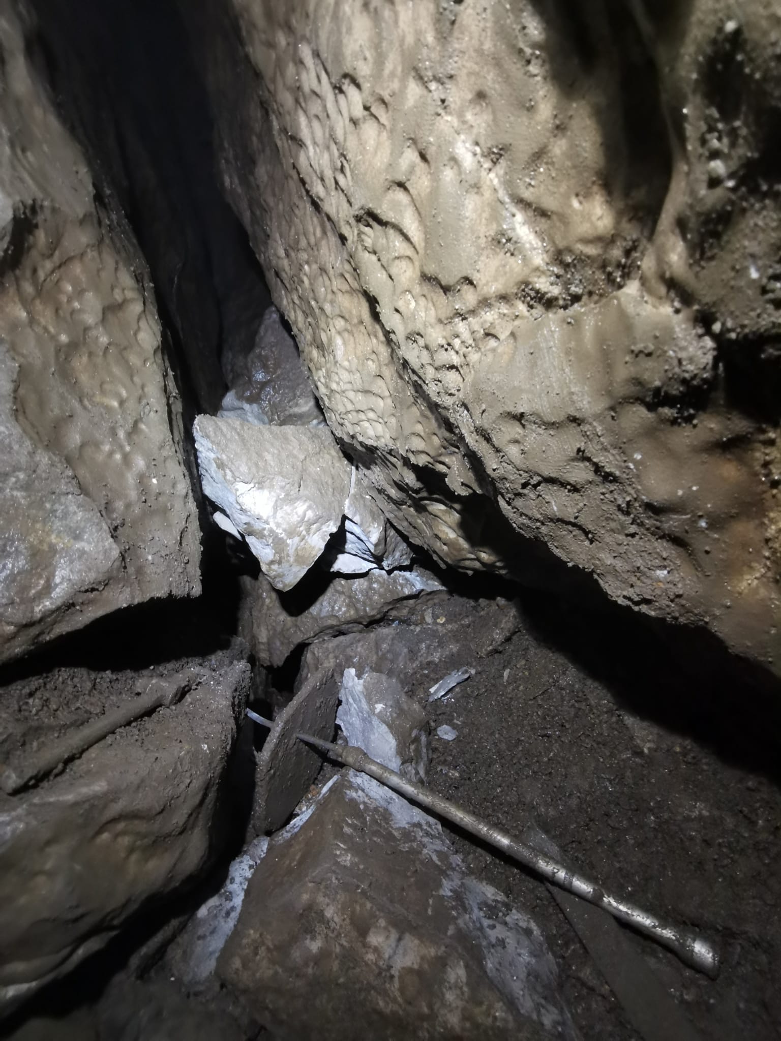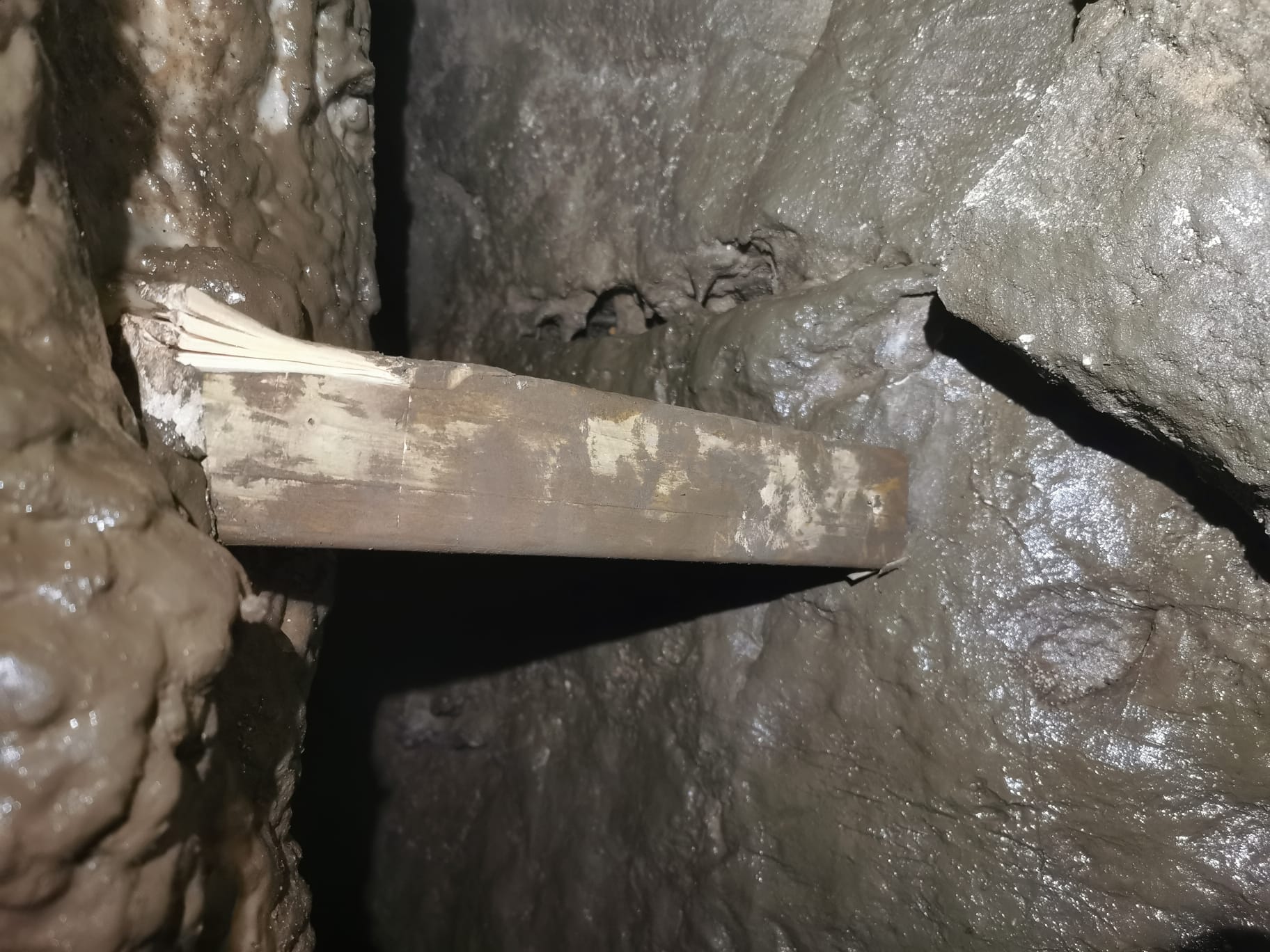 Shortly after the pitch is a very technical squeeze over a tight rift which is not easy and Chris fell victim to on his return last time. So I spent a bit of time this trip with a length of 3x2 and a 2 foot long wood saw and ended up with a relatively poorly positioned stemple which will hopefully be of some use. After that I continued on to the end where I could begin forging a route ahead. It had been over 2 months since I was here last (https://www.eldonpotholeclub.org.uk/homepage/current-uk-projects/waterfall-swallets/702-500-a-goer-04-12-2026), not due to lack of trying, so I was super excited to finally be laid out with drill in hand ready to start smashing the place up. And the draught today was steady and very encouraging.