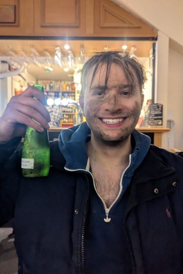 We crawled out, now completely knackered. The entrance crawls felt far longer than on the way in, but then the sweet smell of fresh air hit me. We washed off in the waterfall and headed to a pub near Eyam to swap stories, eat crisps and receive concerned looks from strangers. I was also glad to be assured that this does class as a good and proper caving trip.