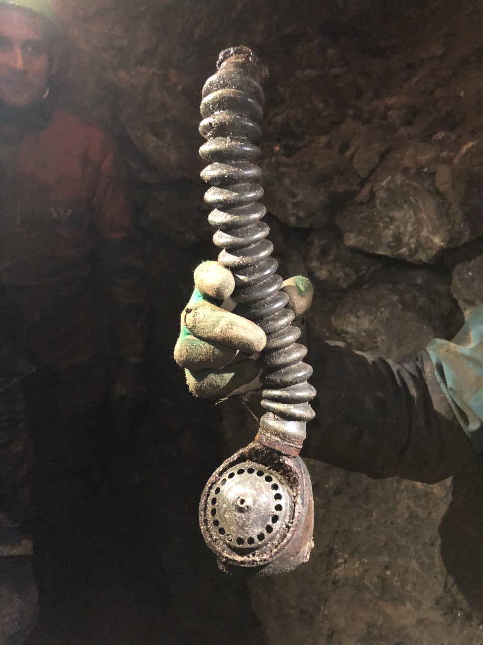 Oh what fun mud can be. Tuesday Nighters met up for a nice wander into Merlins Mine. Yes, it has been raining off and on for the last month but there is always hope that you can get into the further reaches of the Stoney Middleton caves. Katie had her bag of Science with her and was tasked with collecting information and samples for J.G. . It has been mentioned that these water samples could be helping to keep his youthful appearance as he might really be 300 years old…. A rope was mentioned and some of us brought our SRT kits. Some did not. Yes, the shaft is climbable with the hand line but I opted for some SRT. I enjoy doing that just as much as challenging my slippery feet climbing, maybe next time. Katie and Edvin moved through quickly trying to reach a data logger only to find it was sumped so it was not retrievable on this day. They were able to retrieve some data from one other and the magical water sample. I never like to cave at the back of the pack…I am sure that last person is always eaten by zombies and since I rarely look at a survey (not sure why) I am sure to take a wrong turn. I was last. So following the feet in front of me they took a wrong turn. It really is a wonderful maze of a mine. We ended up scooting through like penguins in the slippery mud to find we were on the way to the through trip to Oyster Chamber which was not the plan. Well, back through the tight squeezes and mud we found the others returning from said sump. They wanted to return to where we had ended up to get to Gimli’s Dream.. so back through penguin style through the muddy puddles. Gimli’s does not disappoint and the conservation tape is still in good shape. We had to make a decision whether to just do the through trip or back out the way we came and explore the upper levels. We agreed to head back as some of us had SRT kits to collect. I would like to come back to do the through trip soon. Yes, back through the squeezes and climbs. We had a good look at some of the side passages on the way out and then out to the nearly tropical feeling warmth. I always love that first smell of wet earth as you emerge. Time for a quick photo on Katies phone-which ended up doing strange creative framing , probably due to the fact it had just been on a two hour journey in her suit in a tea towel. Fun done for tonight for most of us… Katie headed down the road to Streaks to collect another data logger…dedication.